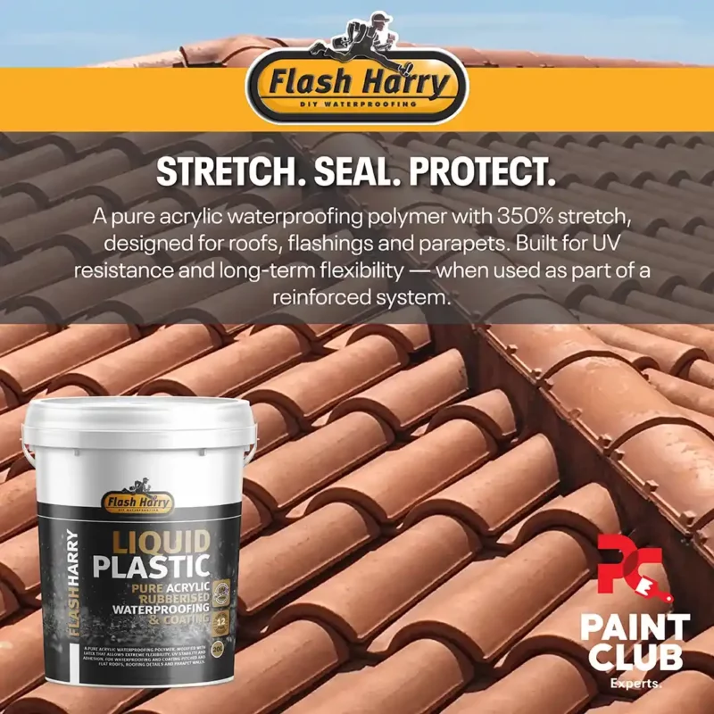 Flash Harry Liquid Plastic isn’t positioned as a miracle coating. It’s a professional-grade pure acrylic waterproofing polymer designed to be part of a reinforced system.