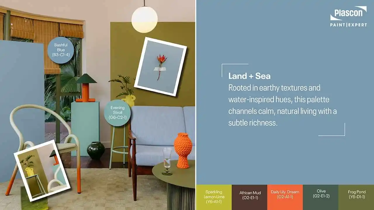 - Colours drawn from the existing Plascon library, curated to reflect mood, movement and meaning, rather than brand-new experimental hues.