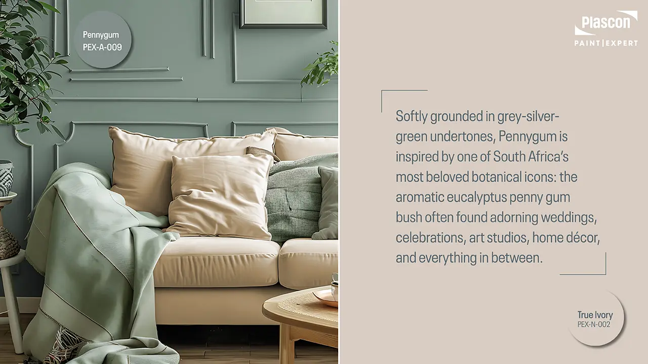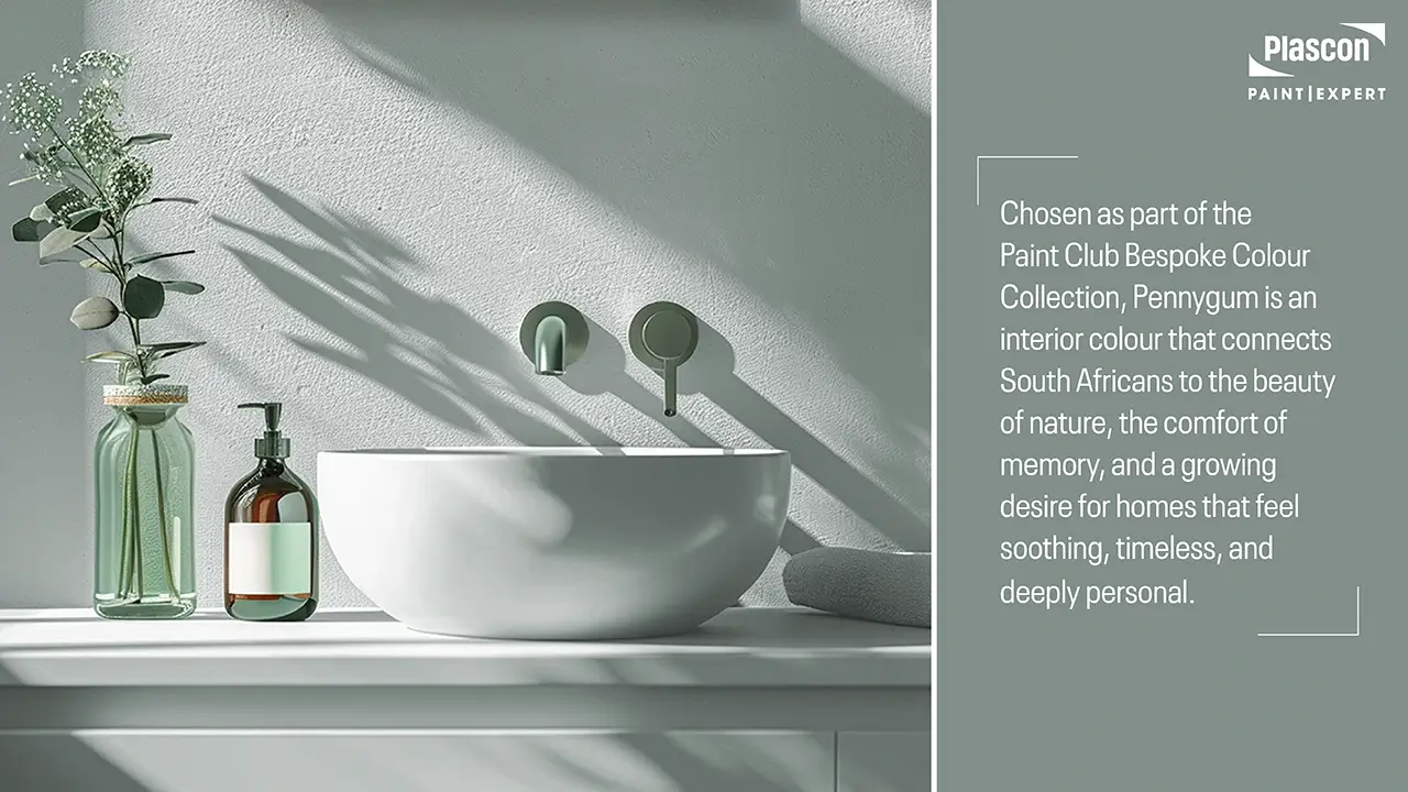 Chosen as part of the Paint Club Bespoke Colour Collection, Pennygum is an interior colour that connects South Africans to the beauty of nature, the comfort of memory, and a growing desire for homes that feel soothing, timeless, and deeply personal.